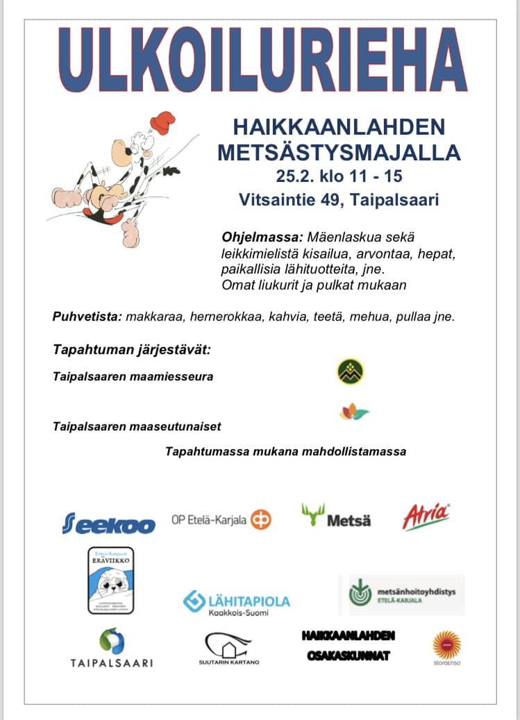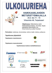 Koko perheen ulkoilutapahtuma sunnuntaina 25.2.2024 klo 11-15.00 Haikkaanlahdella (Vitsaintie 49, Taipalsaari)