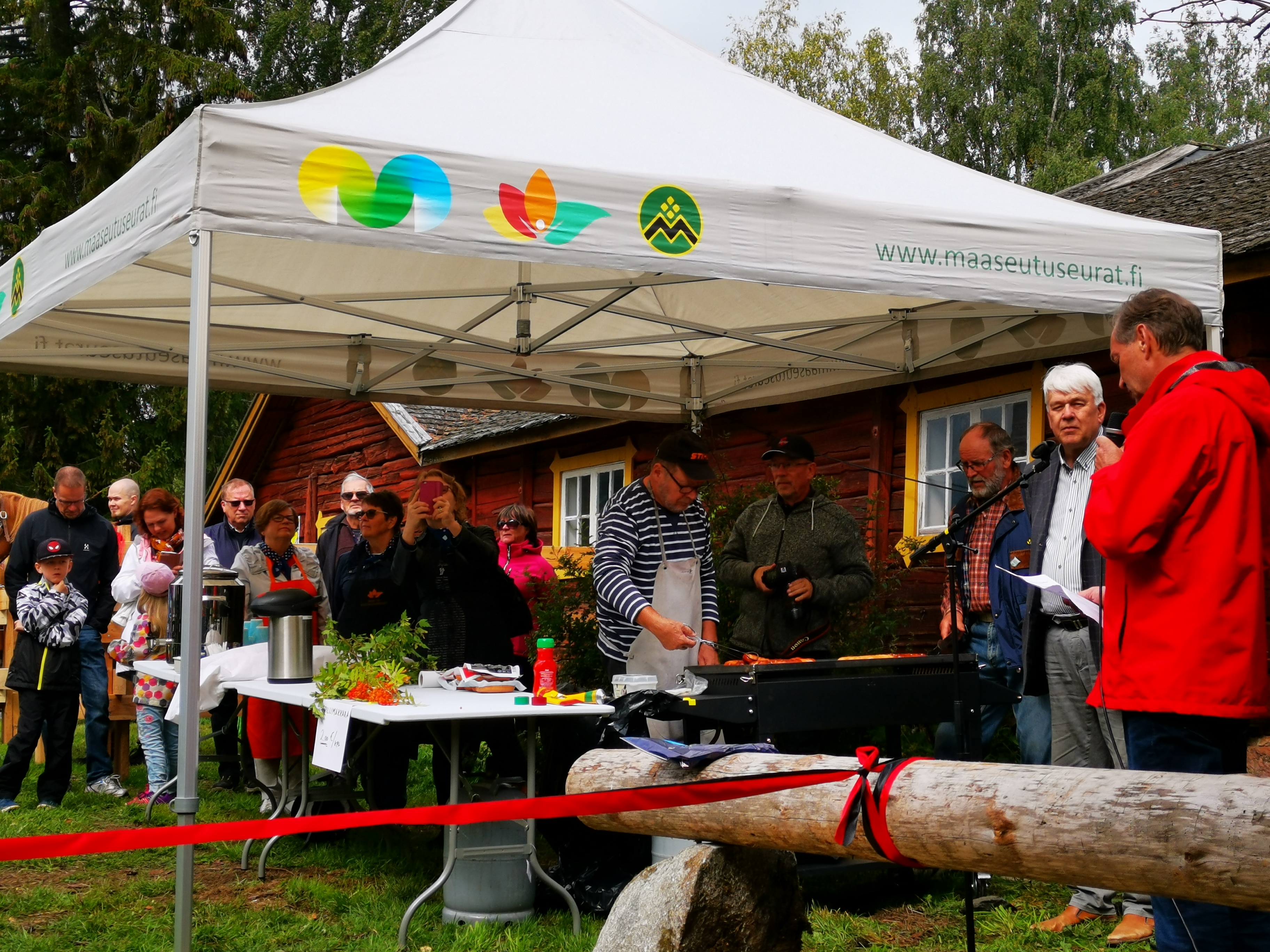Sami Rounelan taitavissa käsissä veitsi liikkui vilkkaasti, pilkkoen palvattua sikaa lautasille. Tämän maittavan ruokapöydän ympärillä pyöri 84 ruokailijaa, joten 100 kiloinen sika meni aivan keposesti kokonaan. Maaseutuseurat yhdessä (maamiesseura, maaseutunaiset ja tuottajat) tarjosivat tapahtuman jäsenilleen ilmaiseksi.