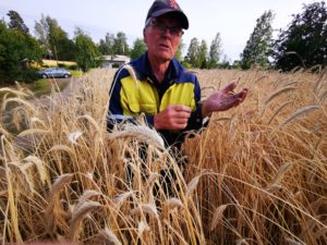 Tämän ruispellon sadosta on jauhettu sämpyläjauhoja sekä myös uutispuurojauhoja. Näistä ruisjauhoista koululaiset pääsevät leipomaan sämpylöitä sekä maistelemaan myös uutispuuroa 22.9.2019 Röytyn uutispuurotapahtumassa.