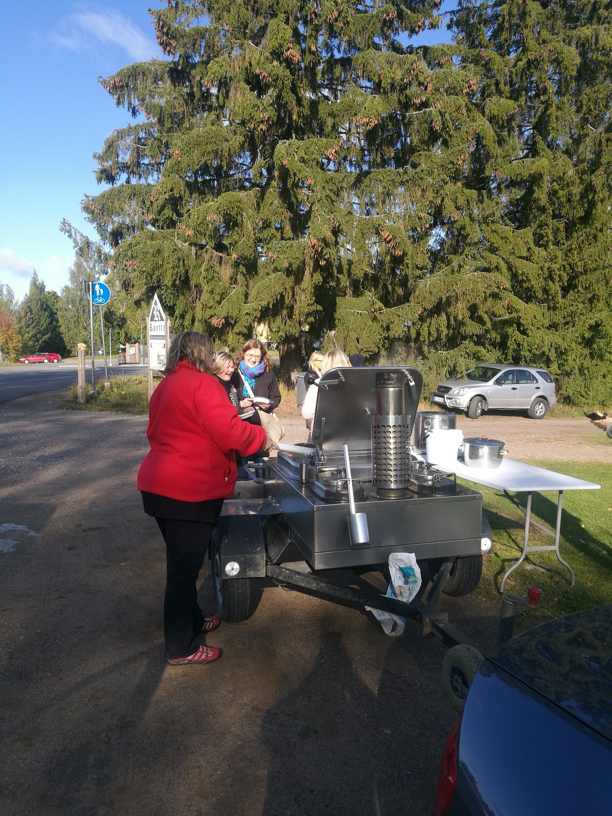 Jumalanpalveluksen päätyttyä kirkkoväelle tarjottiin kirkkokahvien sijasta Taipalsaaren koululaisten ruispellon sadosta tehtyä UUTISPUUROA Röytyn pihatossa.