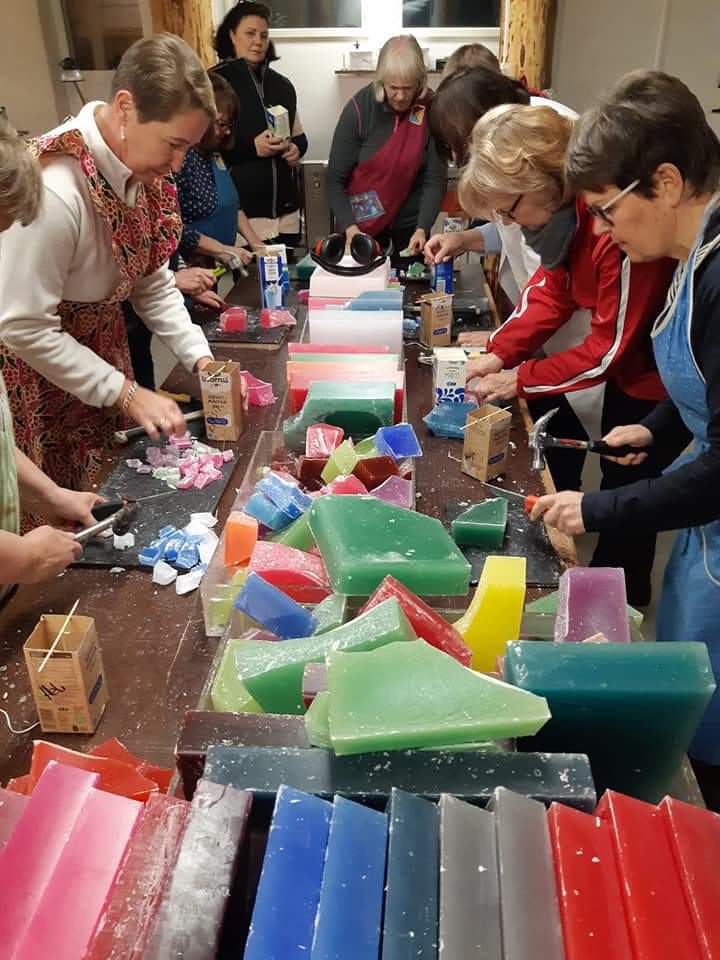 Maaseutunaiset 17 henkilön vahvuudella kynttilöitä valmistamassa KAROLIINA KYNTTILÄ yrityksen tiloissa.